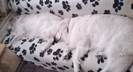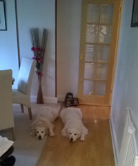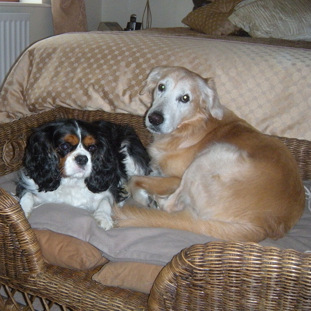 MATTIE LOSES BUSTER (BOO) (EASTER 2017) Diane says “Buster left us in April 2017 and it was a terrible shock. It was very hard for us both and for Mattie who had never known a time without his brother. They were very popular dogs everywhere they went. The boys were given nicknames by Sylvia who