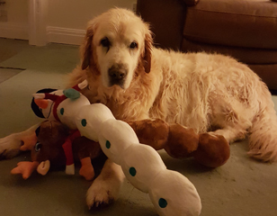 10.7.2017 – 28.5.2022 Charlie’s mum, Kathryn, said; “Charlie came into my life quite by accident. He belonged to someone I knew and the family had little experience of Goldens. He also happened to be a full-blood brother of both of my dogs, Laurel and Hardy. He lived in a big house with lots of land