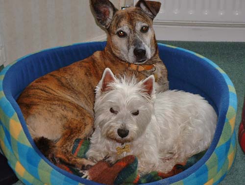 GOODBYE LOVELY LADIES It is with great sadness that we heard about Bonnie and Becky. They were wonderful dogs who had the worst ever start but thanks to the love and care of their fosterer, Sandra, and then having their wonderful 6 years with Rosie and family, they became healthy, happy and whole again. In