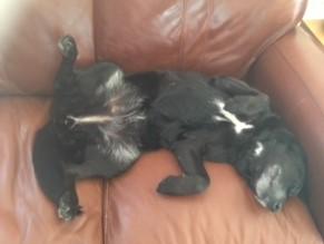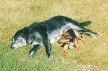 OUR DARLING JAKE HAS GONE (2001-15.5.2014) The picture is of Jake cuddled up to his beloved Dad, Ricky. Jake really missed his lifelong partner in crime Elmo and now they are, once again, reunited forever at Rainbow Bridge. In many ways, knowing his days were also numbered because of a melanoma, it was lovely for him to have his